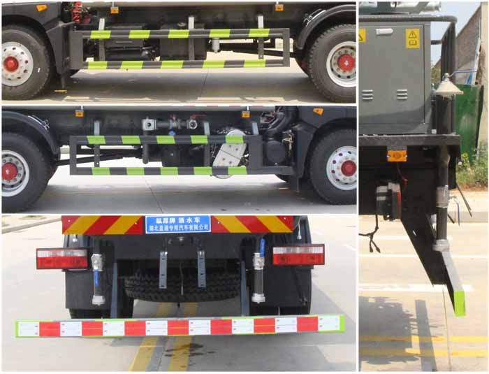 該車主要用于城鄉(xiāng)園林綠化噴灑作業(yè);主要裝置為水罐及噴灑裝置;罐體總?cè)萘?/span>:10.7立方米;罐體有效容積:10.2立方米;罐體外形尺寸(長×長軸×短軸)(mm):4800×2300×1300.ABS系統(tǒng)生產(chǎn)廠家,型號:焦作博瑞克控制技術(shù)有限公司,J ABS;襄陽東風(fēng)隆誠機(jī)械有限責(zé)任公司,ABS/ASR-24V-4S/4M.側(cè)、后防護(hù)材料均為:Q235碳鋼,連接方式均為:螺栓連接,后部防護(hù)截面尺寸(mm):120×50,后部防護(hù)離地高度(mm):480.隨底盤選裝限速裝置,限速89km/h.隨底盤選裝燃油箱,電瓶,尿素罐,儲氣筒左右安裝位置,選裝噴霧裝置樣式.選裝箭頭燈裝置,選裝前部電子水炮裝置樣式,選裝前部不帶電子水炮;當(dāng)前部帶電子水炮時,前伸500mm,整車長度為9100mm,8550mm;當(dāng)前部不帶電子水炮時,前伸為0mm,整車長度為8600mm,8050mm.選裝罐體頂部高位花灑裝置及方形罐口,選裝尾部自流口裝置,選裝工具箱.采用底盤4500mm軸距改裝.后軸僅采用鋼板彈簧懸架. |