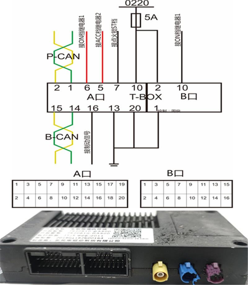我們先來(lái)看看T-BOX的接口,大多數(shù)廠家的T-BOX接口有兩部分,一部分是與GPS天線和4G天線連接的“天線接口”,另一部分是與車輛電氣系統(tǒng)連接的“電氣信號(hào)接口”。