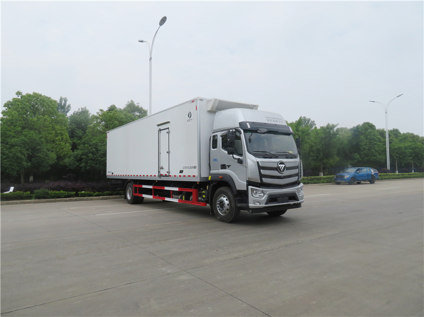 福田歐航9.6米冷藏運輸車_CLT5181XLCBJ6型冷藏車,7300軸距,D6.7NS6B290康明斯290馬力,11R22.5真空胎、鋁合金油箱、EBP多態(tài)開關、空調、車聯(lián)網(wǎng)終端、行駛記錄儀、中控鎖+電動車窗+遙控鑰匙、巡航、MP3、氣囊座椅
